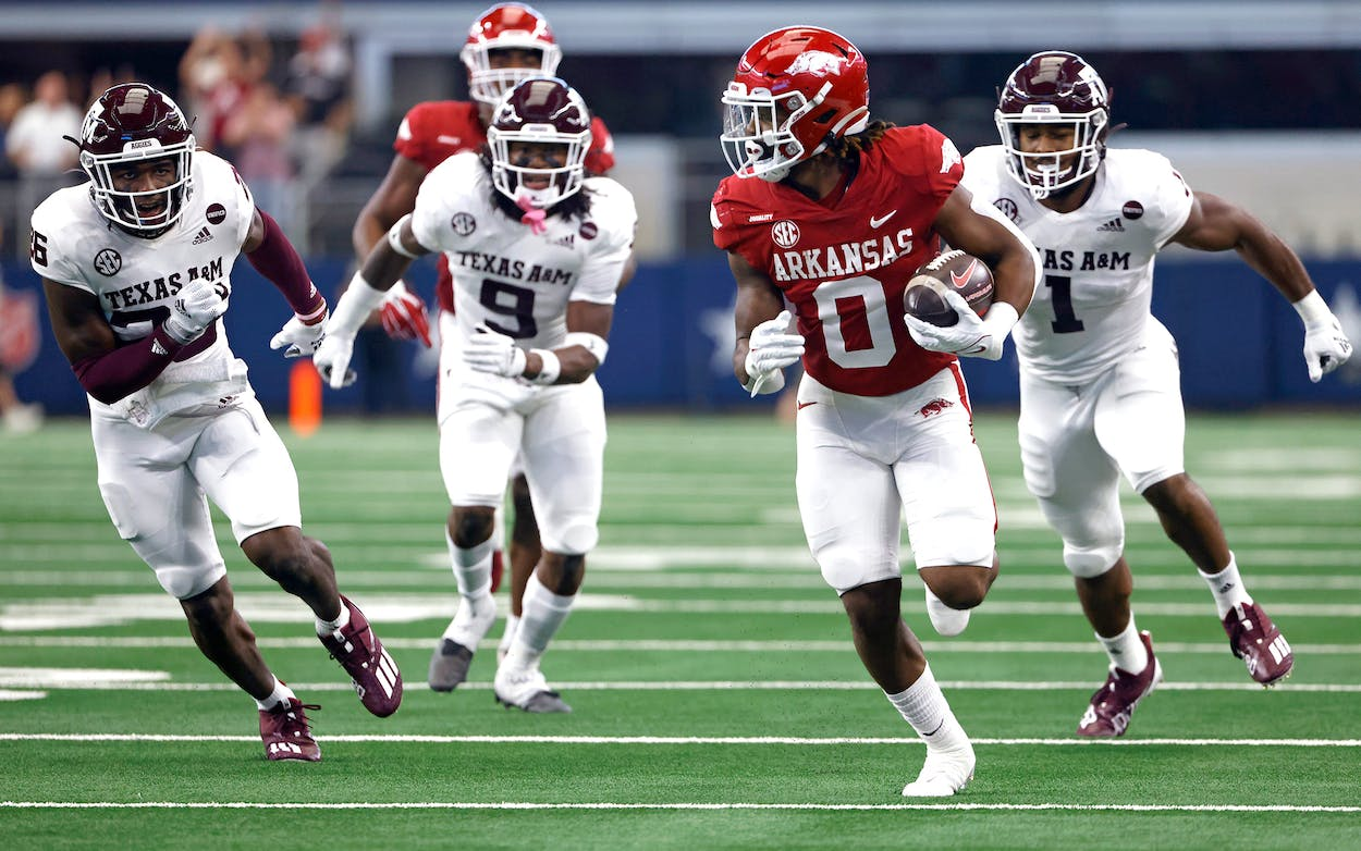 | Arkansas (+6.5) vs. Texas A & M- 12:00– This neutral site game is always close so 6.5 points is too many to give in this matchup. I expect this one to come right down to the wire per usual. |