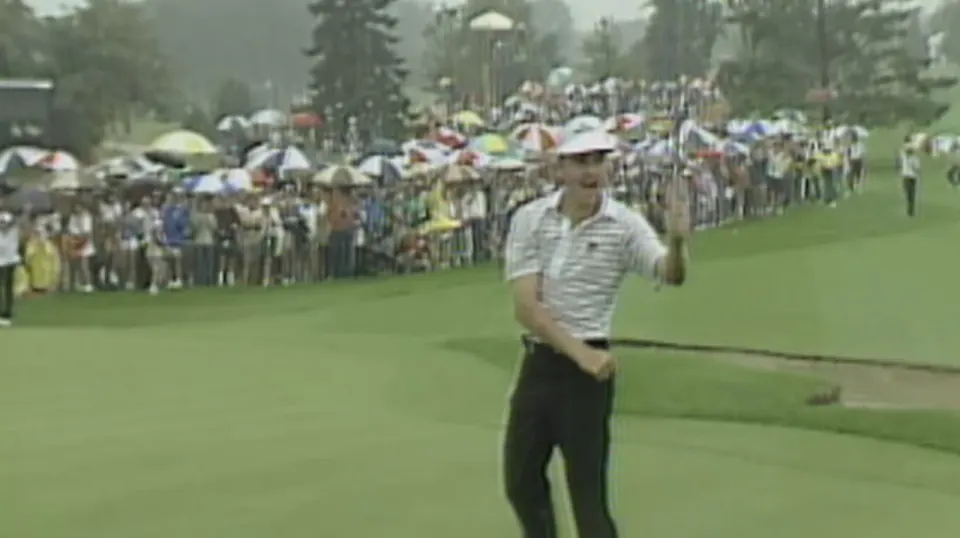 Picard wins his only PGA Championship in thrilling fashion by birdieing the 36th hole of the championship match to force a sudden death playoff and then hitting a 10 foot birdie putt on the first playoff hole for the victory.
