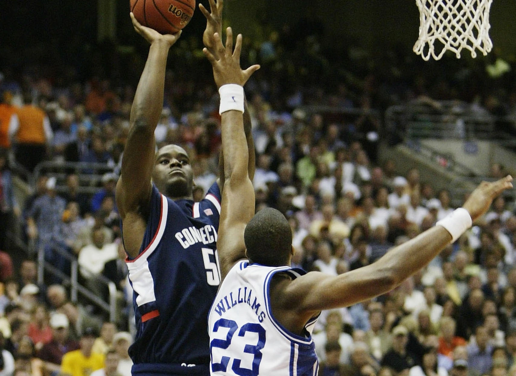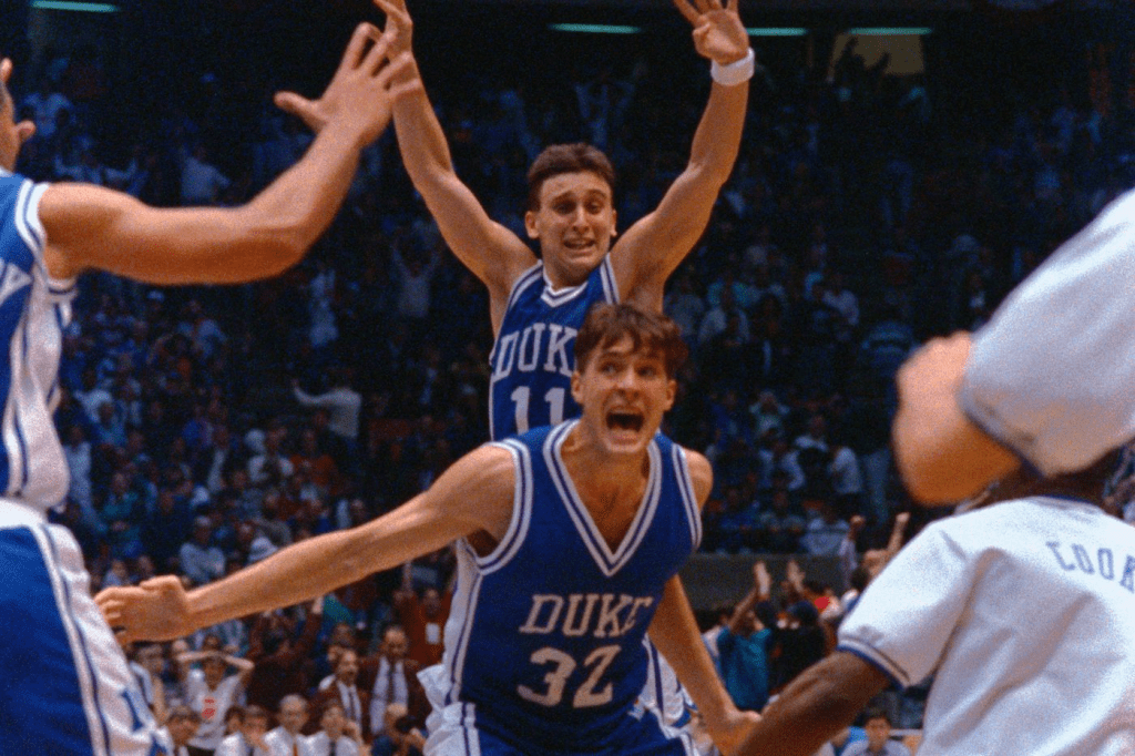 - UConn pulls off the greatest title game upset of the 90’s with a thrilling upset over a nearly unbeatable Duke squad (pictured below).