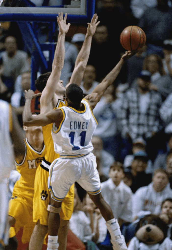 - The Bruins of UCLA (pictured below) win their first national championship with narrow victories over Seattle, San Francisco, and Kansas State followed by a dominant win over Duke. The K-State game was particularly memorable, as the Bruins made a late game comeback with the help of their cheerleaders who arrived in the final seven minutes of regulation due to a flight delay.