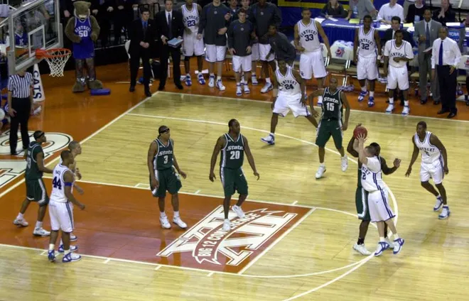- James “Fly” Williams leads the Governors of Austin Peay into the Sweet 16 for an epic clash with Kentucky. The Wildcats win this high scoring classic in overtime. (pictured below)